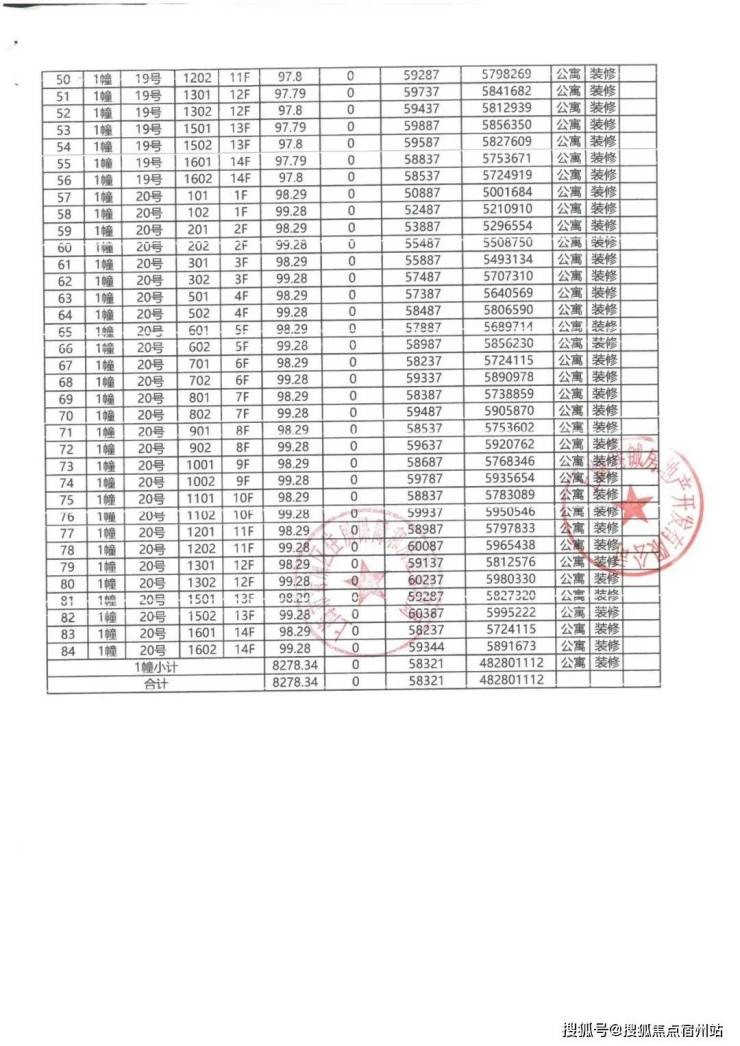 一房一价表: