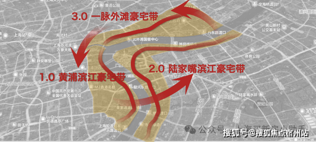 沿着这条横轴,苏河湾豪宅社区、瑞虹新城、大连路科创&豪宅集群、环江浦公园豪宅带, 一系列豪宅项目集中为一个个豪宅集群 ,不仅大幅提升了沿轴的居住品质,更形成了高端商业、文化资源的集聚效应。