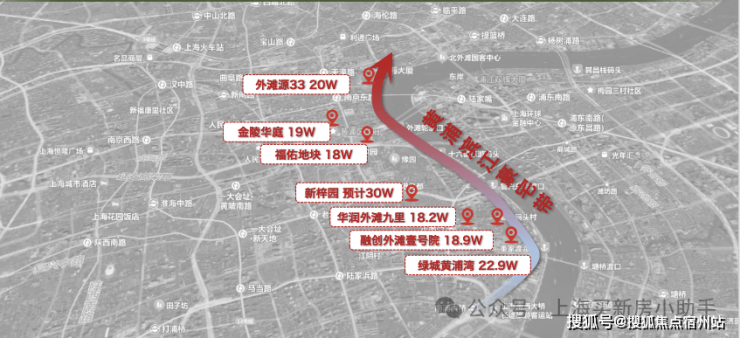 虹口四川北路-临平路 14.78-16.6万/㎡ , 北外滩绿城地王楼板价达约13.6万/㎡,这一楼板价,几乎与保利外滩启PARK77均价(13.55万/㎡)持平 ,未来该地块也将剑指 20万/㎡ 。