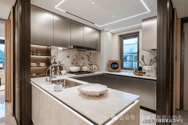 比如说 餐边柜+操作台+洗手台一体化设置 ,让这个空间不再单独的满足于简单的吃饭、客厅休憩。