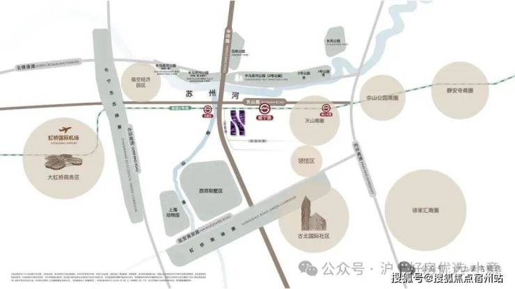 【地铁2号线】直线距离北新泾站约200m,威宁路站约800m,东向2站中山公园,4站静安寺,6站人广,9站陆家嘴,直抵浦东国际机场,西向3站虹桥2号航站楼,4站虹桥火车站,是上海名副其实的国际线。(*数据来源于百度地图测量及百度统计)