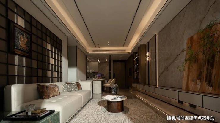 比如说,圆弧形吊顶让空间更具柔和美感,金属线条提升空间的层次感,细节之处精致考究。