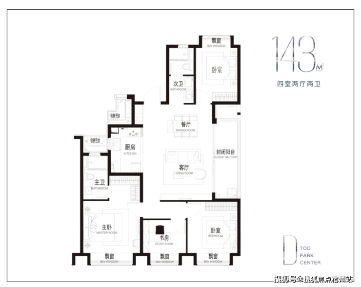 建面约143㎡户型则是项目此次的明星户型,也是市场臻稀的终极改善产品,四房的功能性匹配愈来愈多的二胎和三代同堂家庭。格局上做到了南北通透+三开间朝南,采光和通透性俱佳!