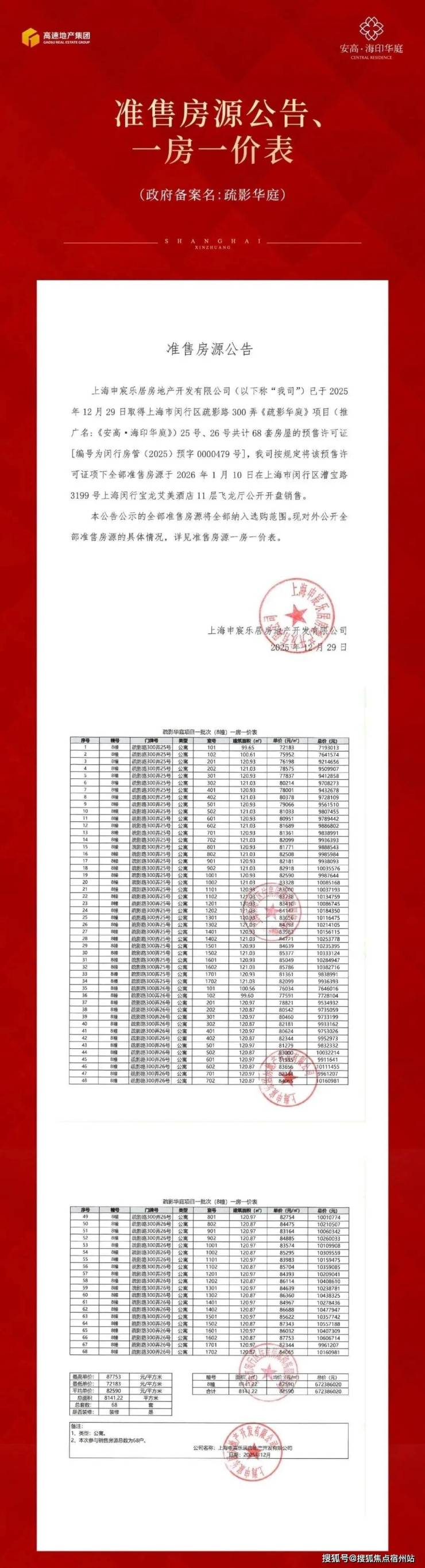 1、本资料为要约邀请,一切有关本项目及房屋的具体信息、图文、数据和买卖双方的权利义务以书面合同及政府最终审批文件为准。本项目推广名为“安高海印华庭”,政府备案名为“疏影华庭”,开发公司为:上海申宸乐居房地产开发有限公司,预售证号:闵行房管(2025)预字0000479号;
