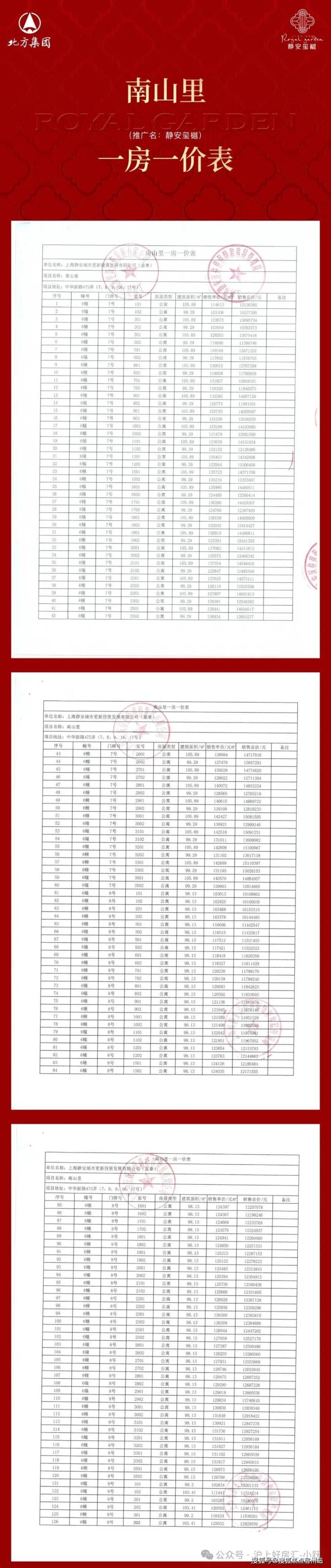 最新一房一价表:
