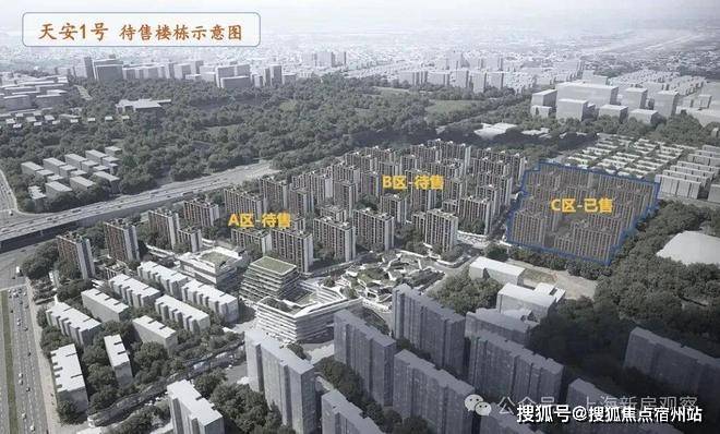 根据天安1号的公布方案来看,将分为A、B、C三个部分,共建设48幢,最高13层的住宅楼,整体容积率为1.94,建筑密度为30%、绿地率35%。