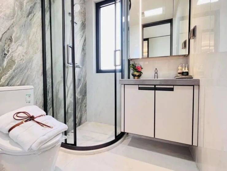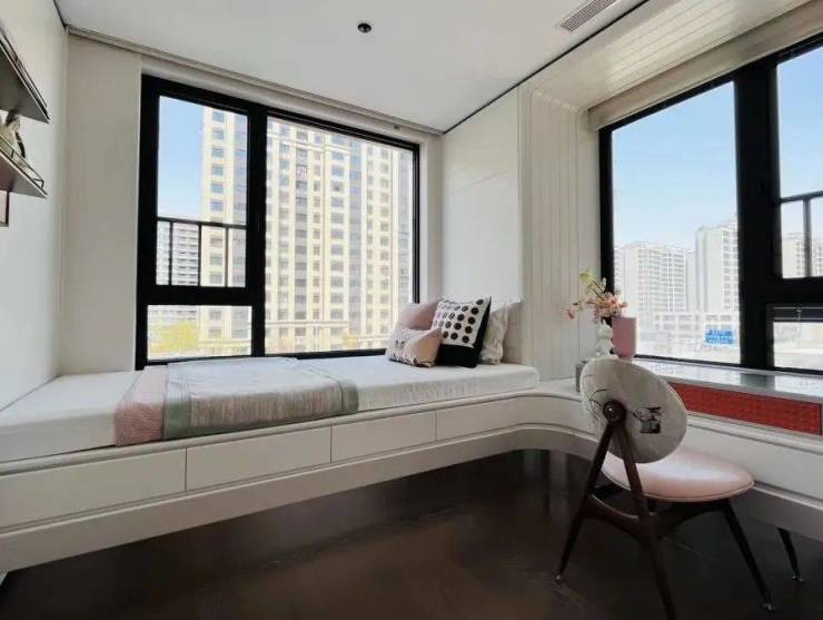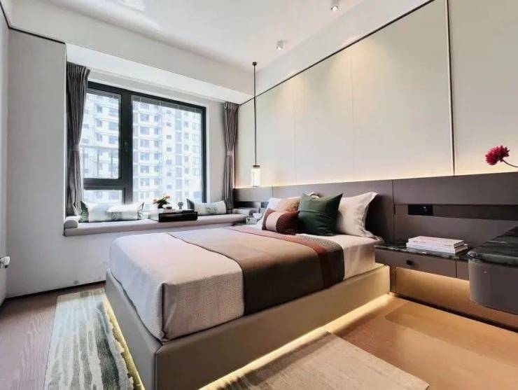 两间卧室朝南,均带有飘窗,主卧自带独立卫浴,小户型也可以拥有酒店套房般的体验。北向房间设计双飘窗,这也就意味着拥有双向景观,给了生活更多一种的可能。