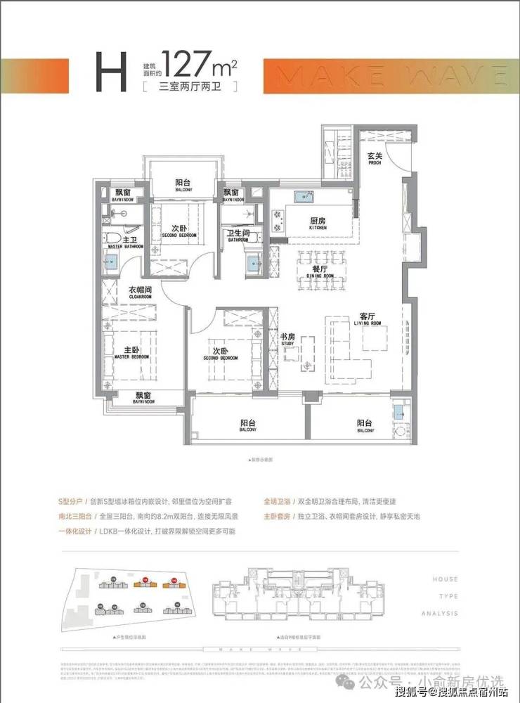 “南向双阳台+南北双飘窗”,构筑真3房户型!