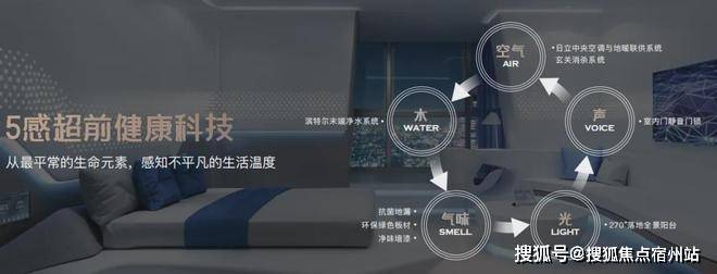 项目在健康方面匠筑5感超前的健康科技,从五个最平常的生命元素,提前为每一位业主感知不平凡的生活温度。