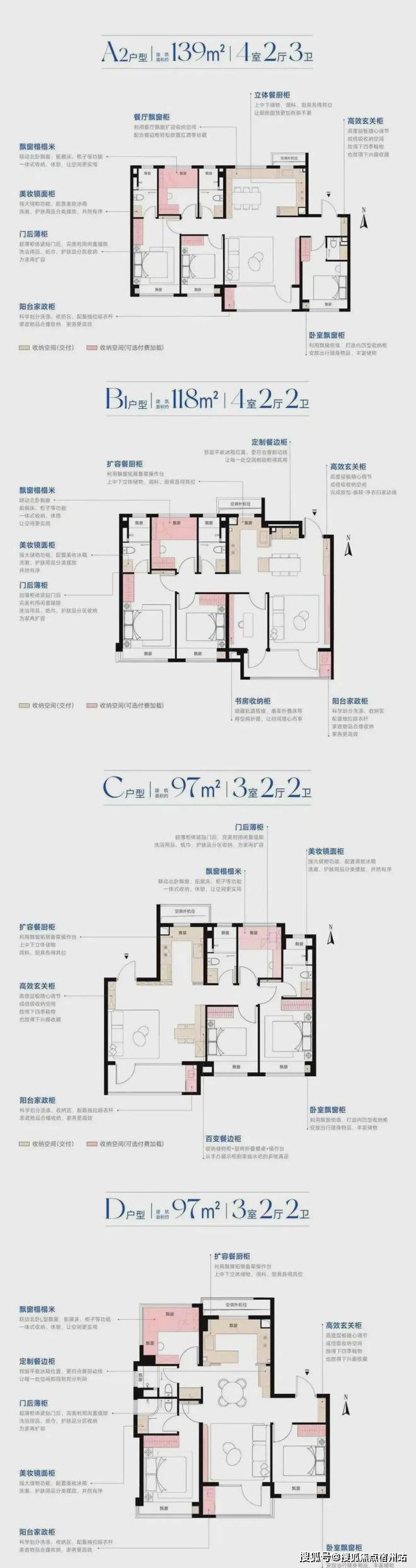 主力户型:建面约 97-139㎡的三至四房,其中 97㎡为三房,118㎡和 139㎡为四房。