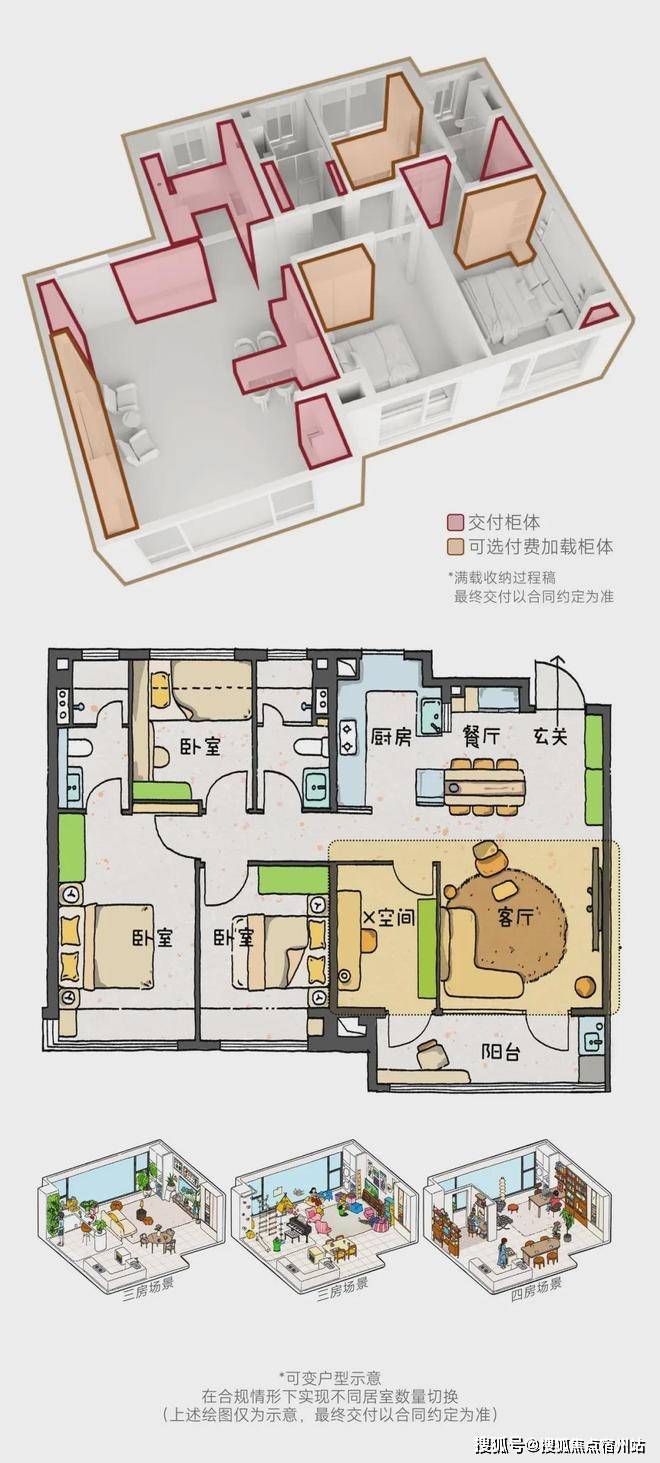 可变户型:以全户型全周期可变满足长期居住需求,与家庭共生长