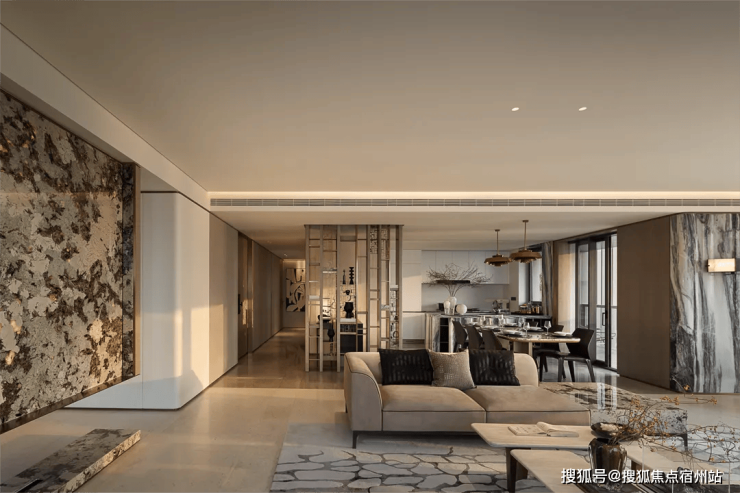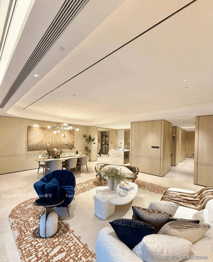 吊顶:多级吊顶 + 无主灯设计,搭配嵌入式灯带,氛围感拉满