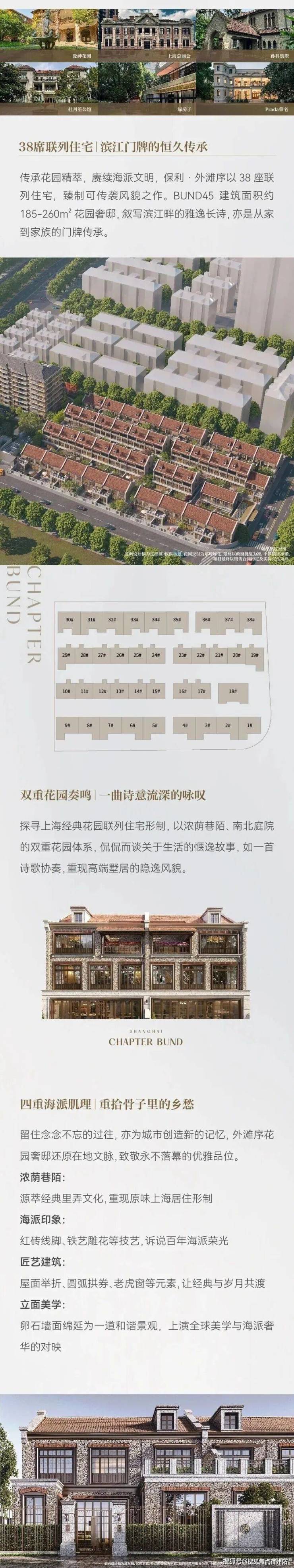 保利·外滩序BUND45地块距离黄浦江直线距离约500米,规划2栋8层洋房和38套风貌别墅,容积率约1.2。这样的纯低密产品配置,在内环内极为少见,更不用说内环滨江沿线。 少量建面约175-280㎡滨江花园别墅; 总价3500万-6000万!别墅样板房已开放!