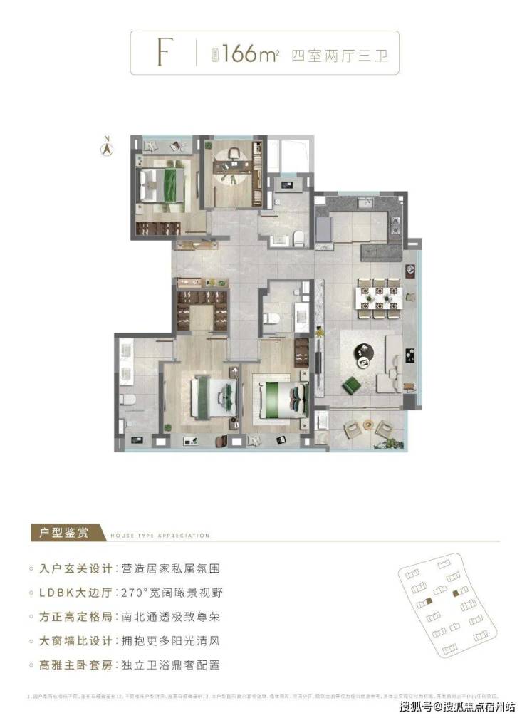 建面约166㎡4房2厅3卫,做到了 3+1开间朝南+双套房设计+卫生间干湿分离,是“一步到位”的进阶改善4房!