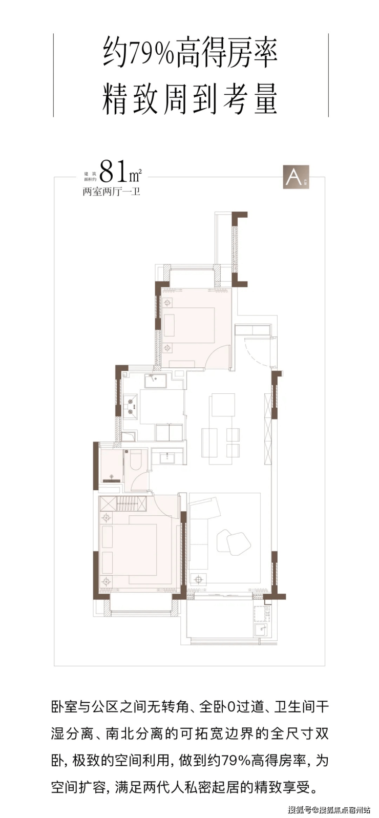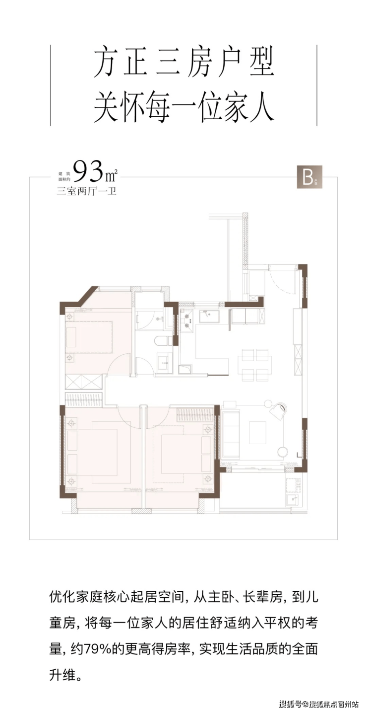首先,约80-83%得房率,让购房者从原来百平米紧凑型3房直接进到改善型3房。