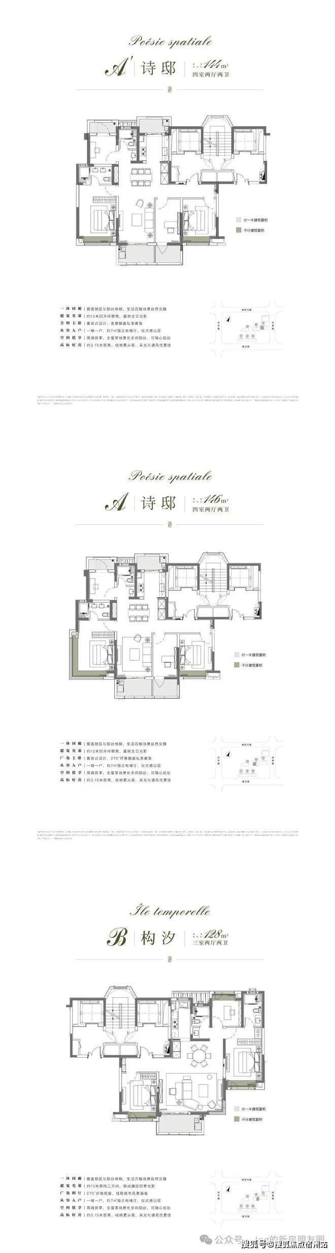 项目以116㎡户型为起步,纯粹改善型社区,所有户型都做到了约3.15米的层高,比普通住宅的层高更是多了35厘米左右,一梯一户的专属配置,预留的约7㎡独立入户区。建面约144㎡和146㎡的4房甚至做了4个阳台。