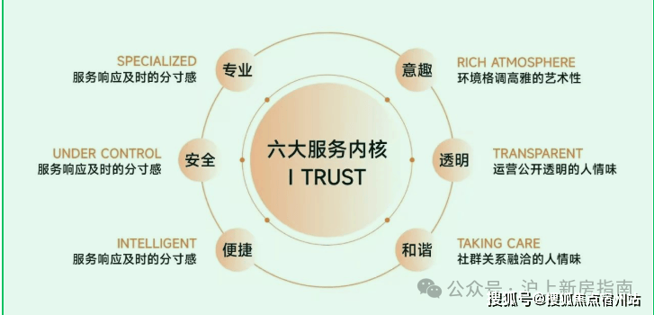 保利物业将品质服务品牌"亲情合院"深度融入日常生活,以"让家更暖"初心理念,围绕真、善、美、和四大维度,在社区落地呈现" I TRUST "六大服务体系,打造有生命的空间,有温情的社区,有质感的生活。