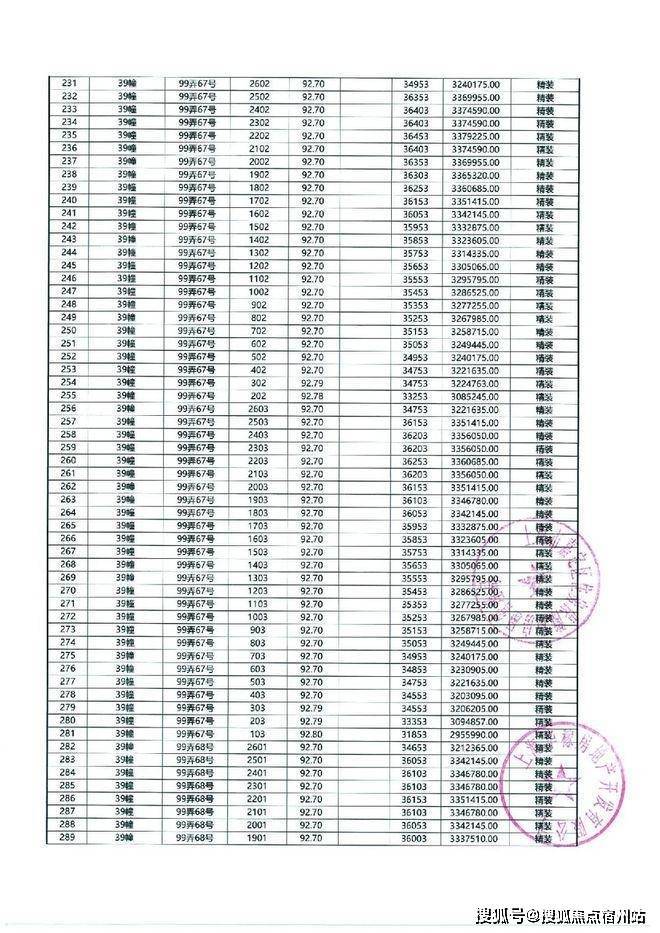 以下为项目最新一房一价表