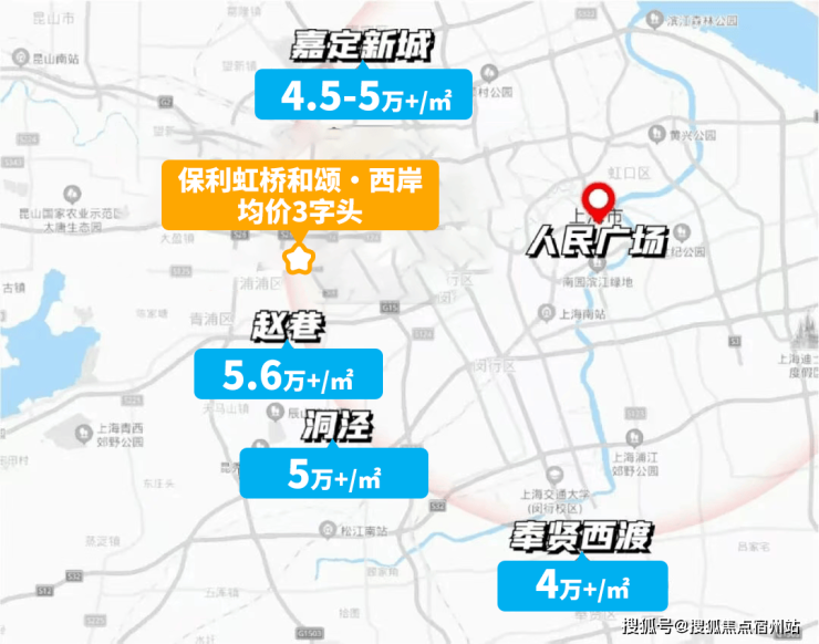 若以人民广场为圆心,你会发现重固是和嘉定新城、青浦赵巷这些500万级的板块在同一纬度。