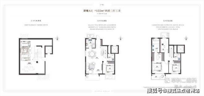 上叠:实现2+1房2卫设计,长辈房位于三层、配卫生间,规避上下楼梯的麻烦。南向阳台与餐客厅一线贯通,享受充沛阳光。四层豪华主卧、北侧连接露台,空中露台及顶层阳光平台,可量身定制成一方幸福天地。