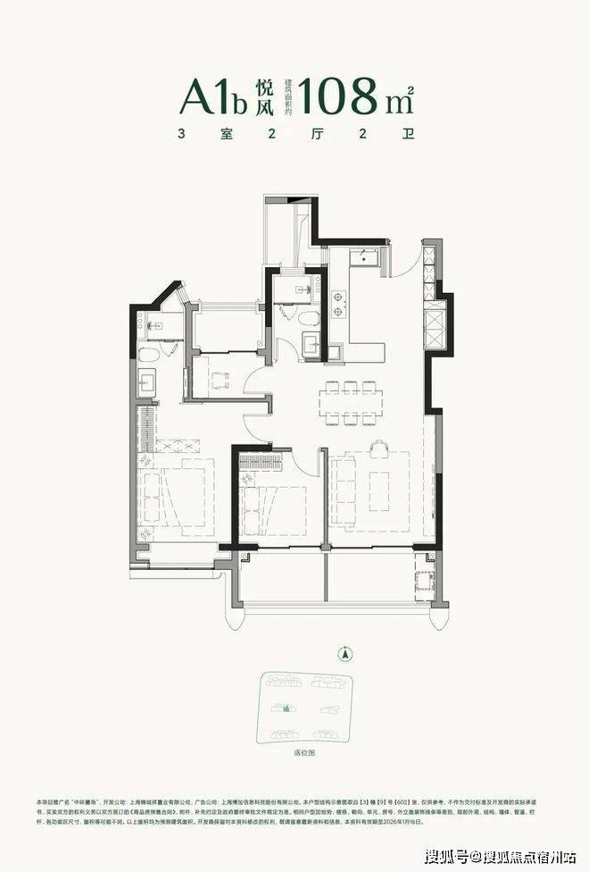 建面约108㎡3房2厅2卫