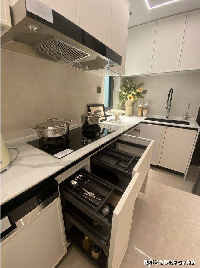 柜门白色烤漆面板,抽屉分区也都是帮大家细致划分,海上清和玺售楼处电话☎:400-8266-670✅✅如多功能调味拉篮+谷物抽+碗碟拉篮等。岛台上配置可升降插座,铝合金抽屉,石材背景板的金属开放格实用性很强。海上清和玺售楼处电话☎:400-8266-670✅✅