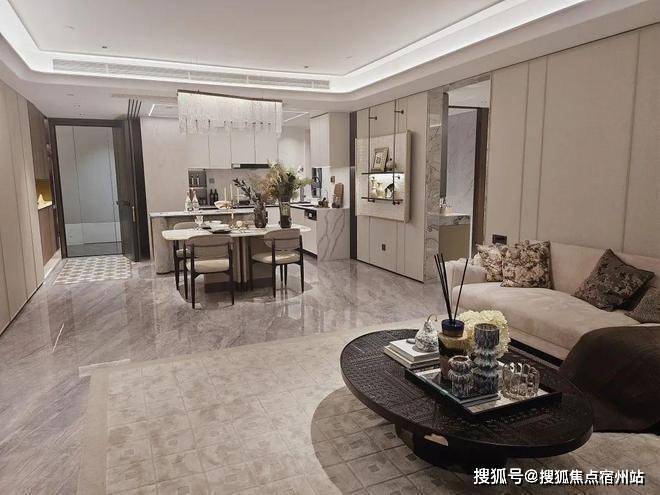 电视背景墙采用卡慕白的石材+皮革造型,弧形吊顶,相当讲究,连空调出风口的形状都打造为海上·清和玺logo山茶花的形状~~三大件为大金(或同等档次)中央空调和地暖,新风系统为百朗(或同等档次),海上清和玺售楼处电话☎:400-8266-670✅✅南向阔景阳台,采光视野一级棒!