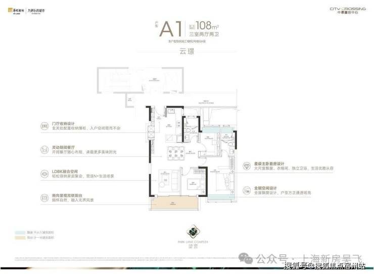 108㎡的入门级三房,起步门槛相比润府提高不少。