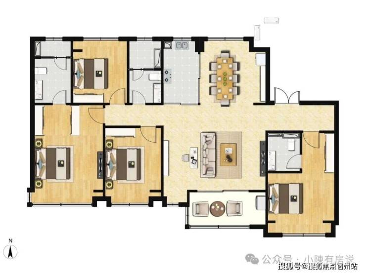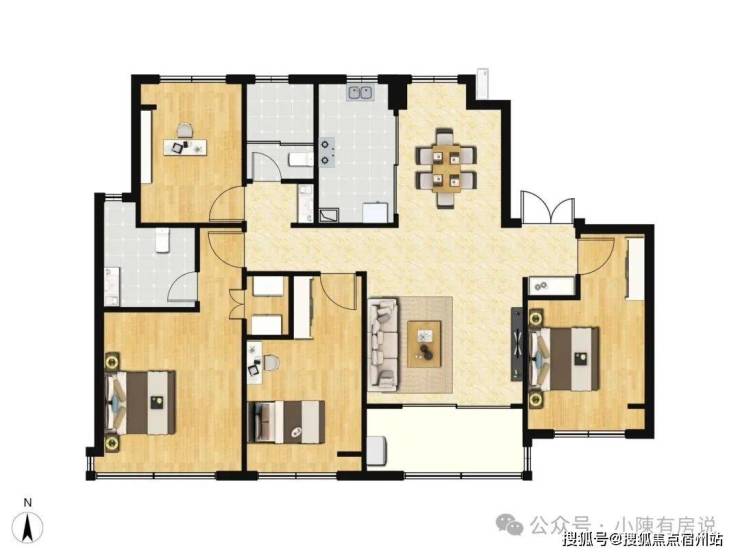 目前售楼处是没有做实体样板间的,所以小陳并没有看到实体房。总体感受还不错,值得一说的是得房率蛮高的,135平的户型做成了4房,可以说在普陀板块的新房里脱颖而出,因为在这个总价➕面积段,大部分130多平的户型还是以3房为主,而且云悦府的4个房间分布合理,动静分明并不拥挤,家里人口多需要4房的可以看看我们这个项目哈~