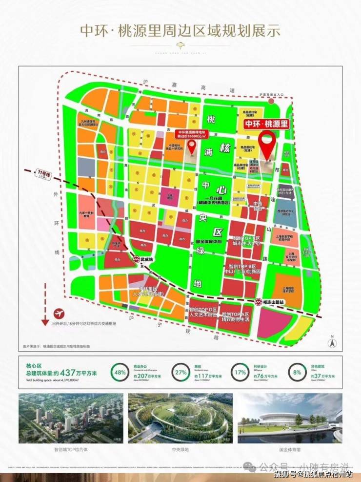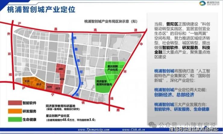 桃浦智创城定位明确,致力于打造长三角商务龙头、科技绿谷及智慧城区,规划三大产业集群,吸引高精尖人才,提升区域价值。整体规划约437万方,产城融合,发展潜力巨大。