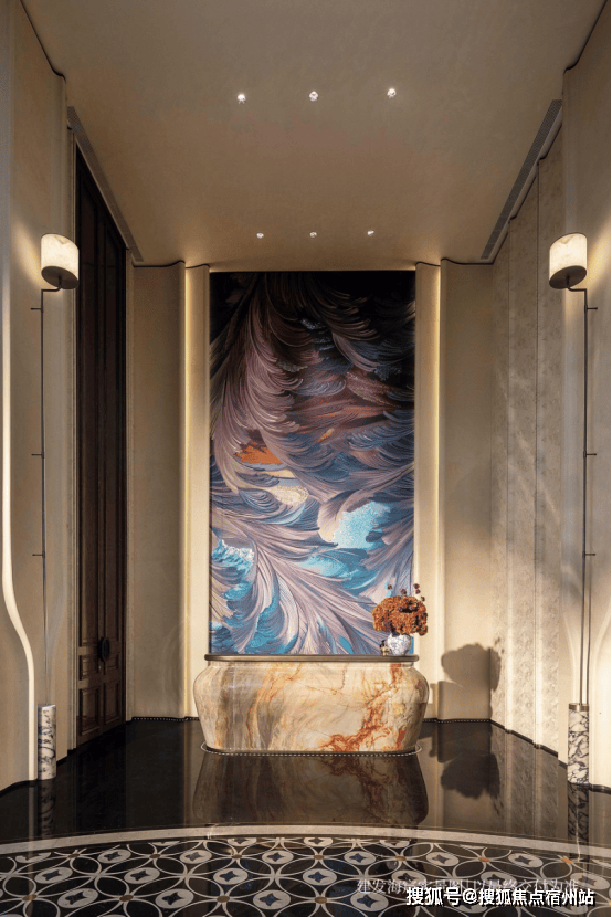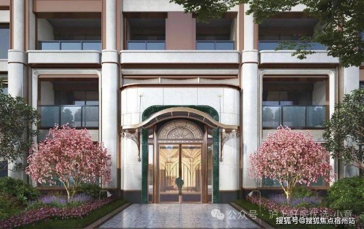 项目大门口标配的铜狮庄严中透出几分摩登腔调。主入口的铜艺精雕大门上,建发特别邀请了百年品牌“老凤祥”掐丝珐琅非遗大师陈徐奇,以掐丝珐琅工艺打造门钹,精致典雅。门厅以上海的标志白玉兰为造型,勾勒出摩登与飘逸并存的气质。