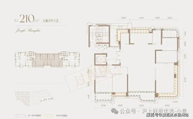 经过专业建筑师测算,该户型的客厅南向开间达到3.9米,入户门到公卫的距离足足5.35米。