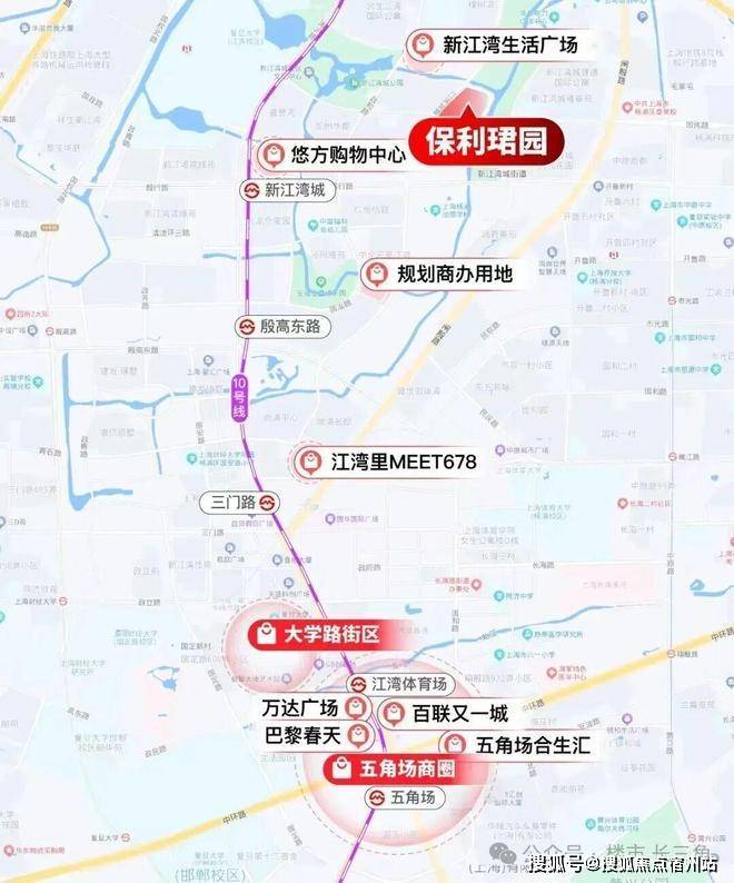 项目周边汇聚五大商业体,距离项目200m就是新江湾生活广场,约1km就是悠方购物广场,约2km是江湾里MEET678,约3km是大学路街区,3站地铁就可以直达五角场商圈:合生汇、万达广场、百联,可以满足日常所需,实现了居住与通勤的平衡。