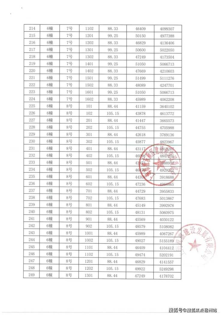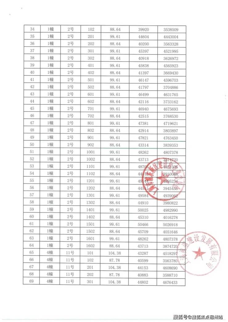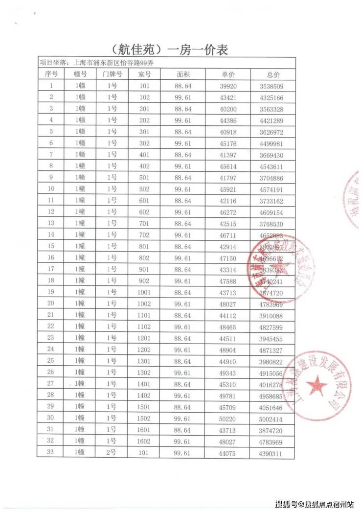 项目一房一价表