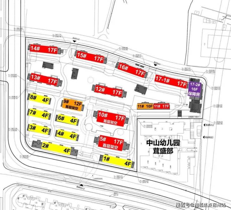 根据方案,将打造7栋4层叠加别墅+10栋10-17层高层,其中部分高层楼栋的首层做了架空设计,10号楼南侧做了下沉庭院。总户数760户,机动车停车位965个,车位比约为 1:1.27。