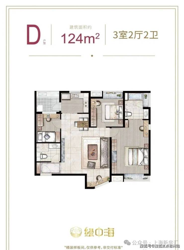 建面约124㎡3房2厅2卫