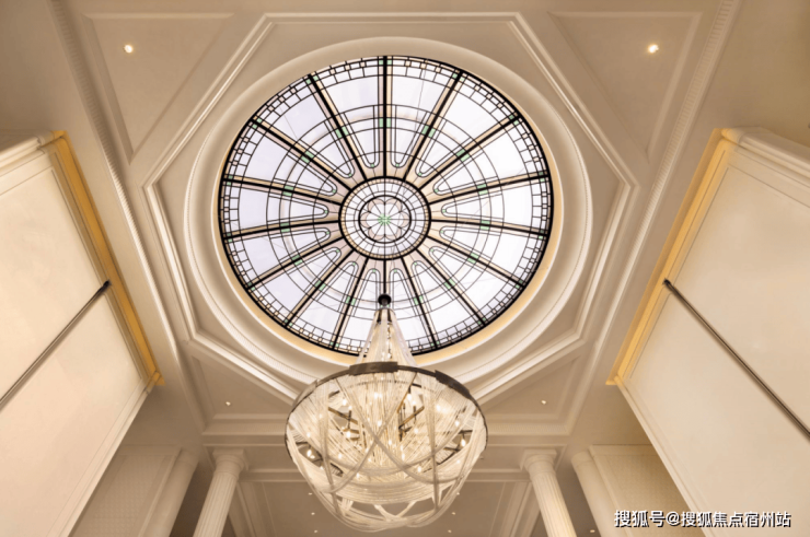 比如,预接待厅的「威尼斯白+爵士白石材拼花」地面、E9级进口水晶灯,以手工匠艺实景兑现: