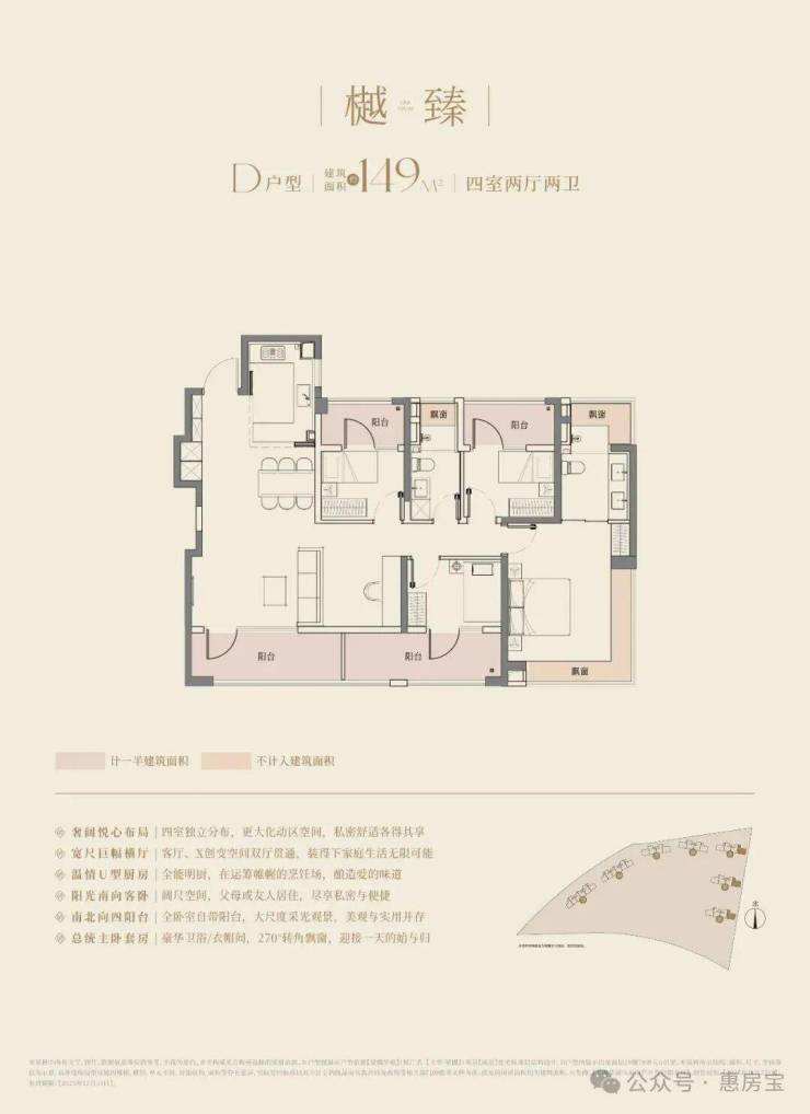 经典动静分离户型,4.5开间朝南+南北四阳台,阳合仅计算一半建筑面积,主卧以及主卫附赠270°转角飘窗;✔✔大华·望樾售楼处电话☎:400-833-6309【欢迎预约】