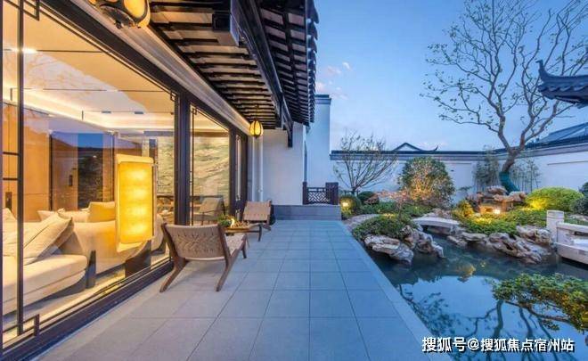 大宅后花园,采用了围合式的建筑结构,有泗水连廊、有金鱼戏水,彰显中式大宅的典雅大气。
