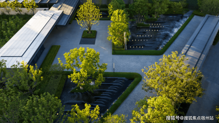 当然,也正因为下挖,形成了一道景观屏障,使得下沉庭院内的空间更为私密和静谧,仿佛置身于一个远离尘嚣的世外桃源实景图