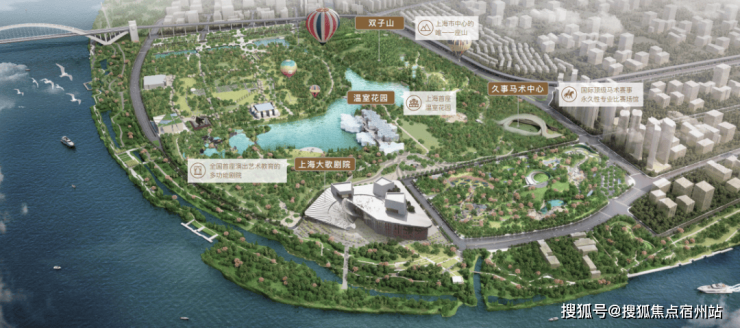 项目直线距离约1.6km是总规划面积近200万㎡的世博文化公园,建成后将成为上海中心城区最大的公园绿地,内部打造上海市中心唯一双子山,
