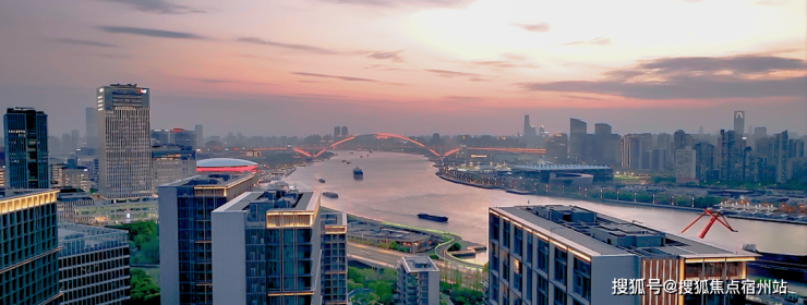 普通江景或许只能看到江的宽度,而保利世博天悦因地制宜采取南偏东「21°黄金倾角」,西低东高的楼栋排布,打造一高一低两层天际线