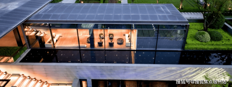 整个会所都围绕着下沉式庭院分布,通过每块超白玻璃,巧妙的将庭院里的植物和水景,过渡到室内,使得室内和室外景观“内外合一”。