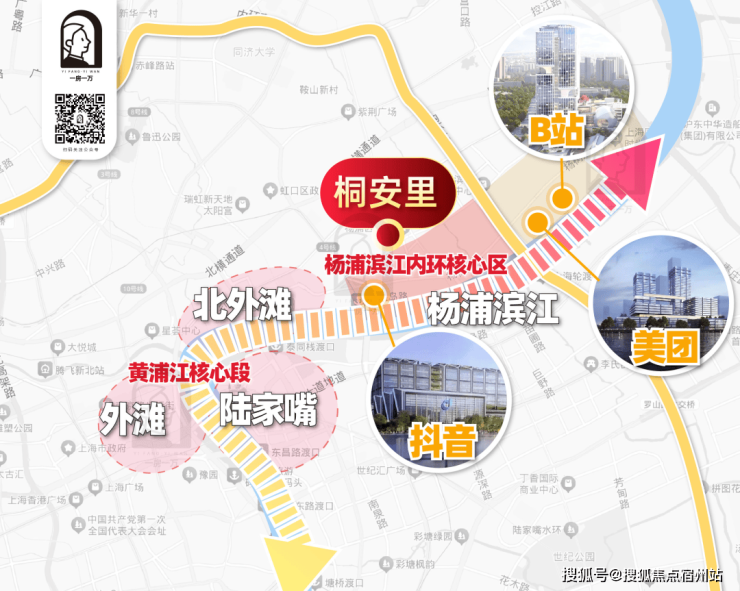 根据《杨浦滨江“十四五”规划》,杨浦滨江将是上海最大规模的工业遗存转化和最大体量的旧区改造,通过城市更新的方式,拿出了近六成土地,共约7.46平方公里,给“大厂”和“商圈”提供了大量的土地开发空间,加快推进中节能总部、美团、B站、抖音、合生、电厂等项目建设。