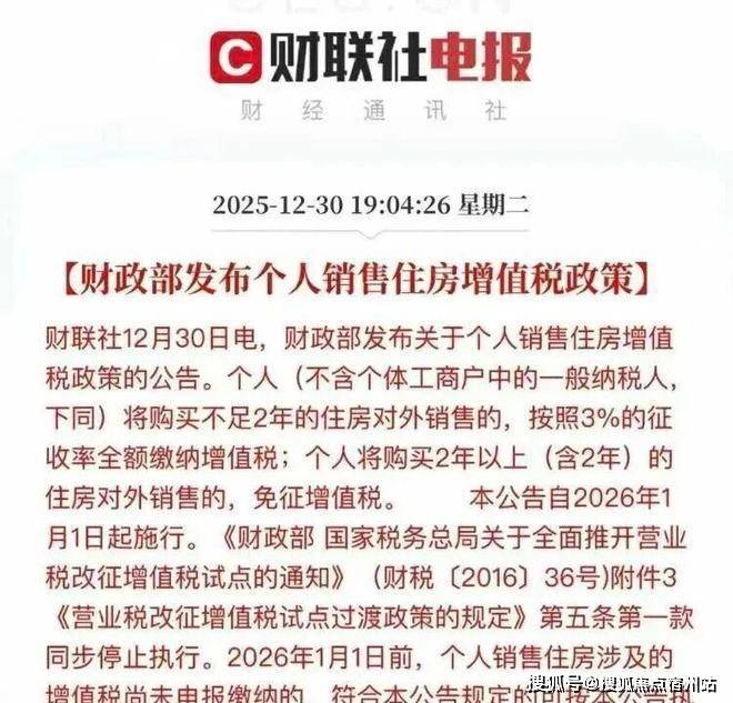 2026年新政后:满2年,增值税直接归零!只需缴纳契税5万。