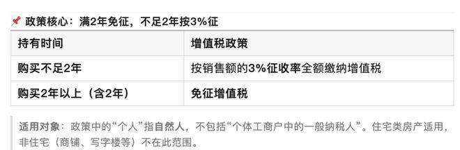 增值税(史诗级利好):只要你买的房子 “满2年”(从房产证或契税缴纳时间算起),直接免征增值税!如果没满2年,征收率也从过去的5%降到了 3%。更重要的是,彻底取消了“普通住宅”和“非普通住宅”的划分,哪怕是200平米的江景大平层,只要满2年,同样免增值税。