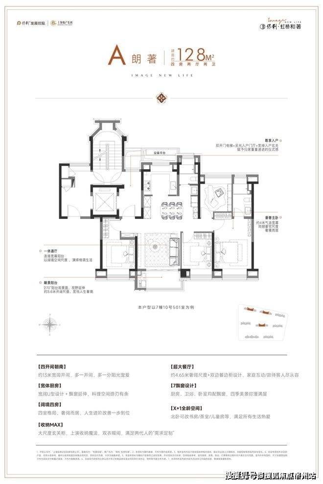 ◎真四开间朝南:据统计,2024年至今的上海新房市场中,建面在125-130㎡产品只有约9%做到了真四开间朝南,而地铁口的4房产品更是少之又少(数据来源于网络)。保利·虹桥和著建面约128㎡户型真四开间朝南,南向总面宽超13米,对比新房市场同面积段常见的10米面宽,采光和视野媲美千万级豪宅。