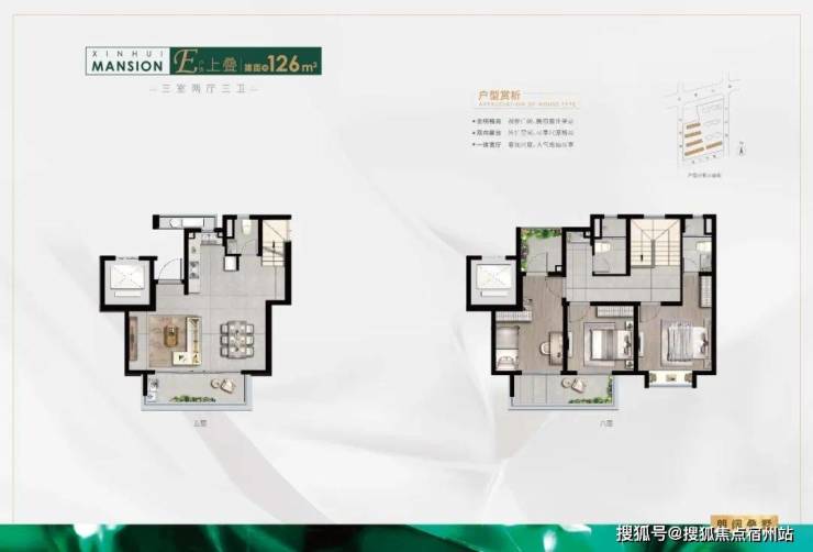 上叠建面约126平米三室三卫
