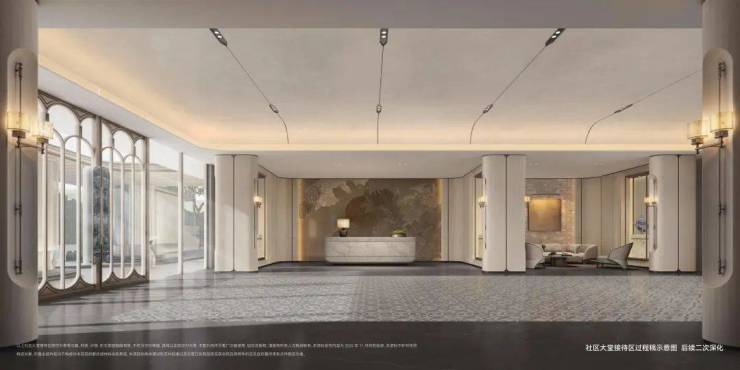 第一重,配置约70米宽酒店感门厅,回家的第一眼,就有强烈视觉冲击,港湾式落客,尊贵感油然而生;