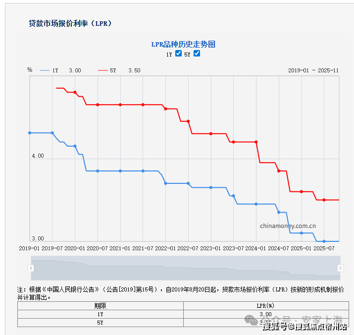 中国人民银行授权全国银行间同业拆借中心公布,2025年11月20日贷款市场报价利率(LPR)为:1年期LPR为3.0%,5年期以上LPR为3.5%。以上LPR在下一次发布LPR之前有效。